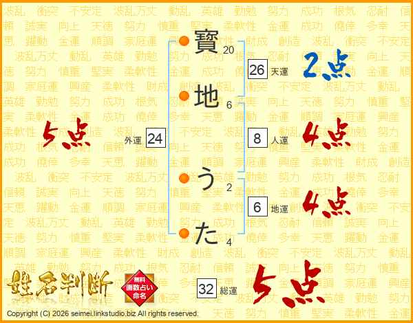 寳地うたさんの総運は32画の5点!