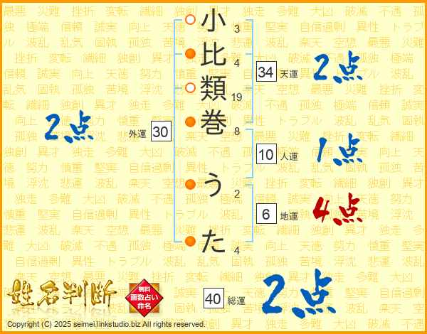 小(3画)比(4画)類(19画)巻(8画) う(2画)た(4画)