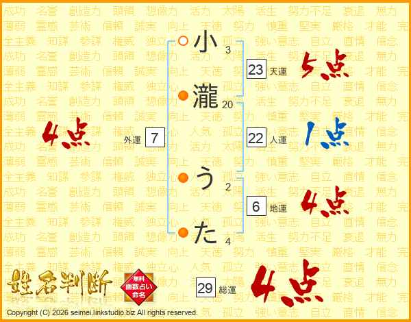 小瀧うたさんの総運は29画の4点!