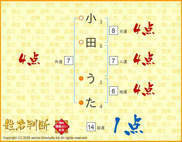 小田うたさんの総運は14画の1点!