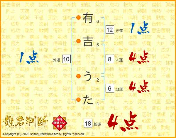 有吉うたさんの総運は18画の4点!
