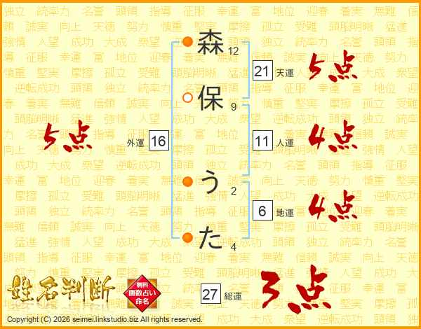 森保うたさんの総運は27画の3点!