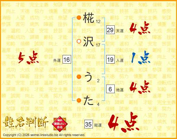 椛沢うたさんの総運は35画の4点!