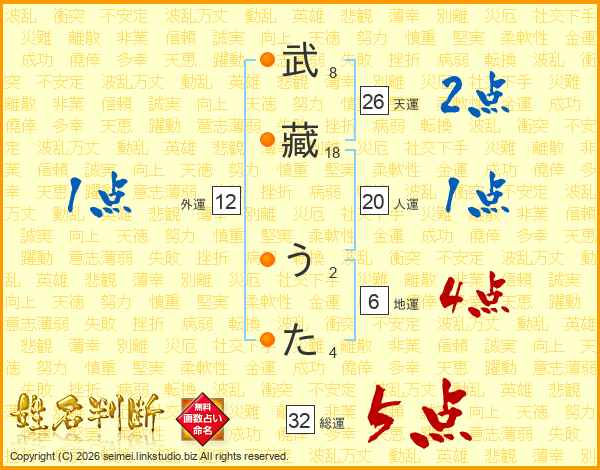 武藏うたさんの総運は32画の5点!