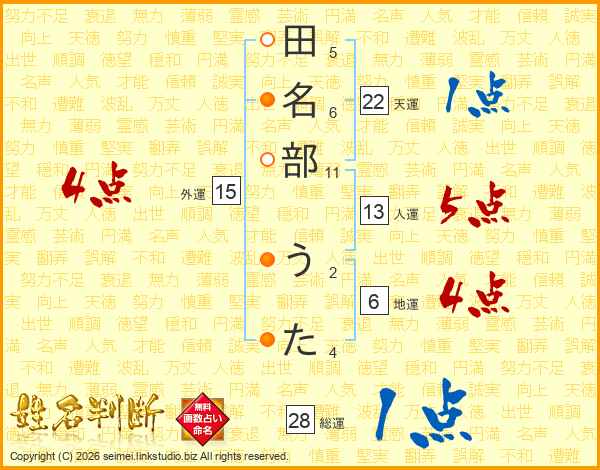 田名部うたさんの総運は28画の1点!