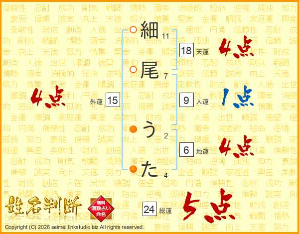 細尾うたさんの総運は24画の5点!