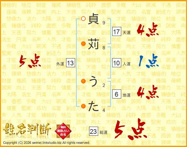貞苅うたさんの総運は23画の5点!