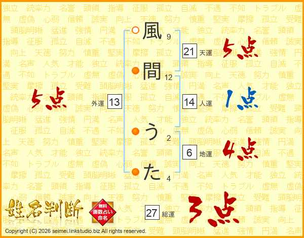 風間うたさんの総運は27画の3点!