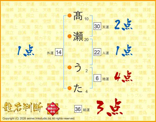 髙瀬うたさんの総運は36画の3点!