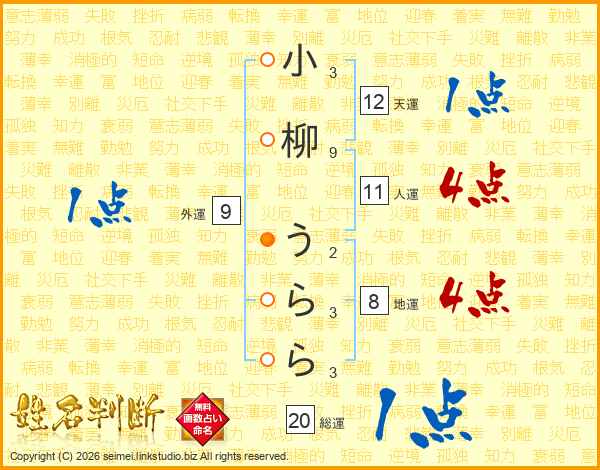 小(3画)柳(9画) う(2画)ら(3画)ら(3画)