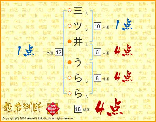 三ツ井うららさんの総運は18画の4点!