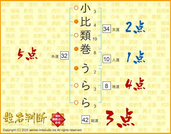 小(3画)比(4画)類(19画)巻(8画) う(2画)ら(3画)ら(3画)