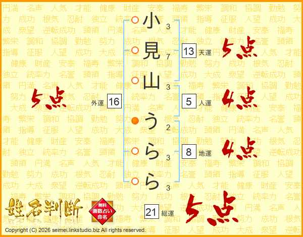 小見山うららさんの総運は21画の5点!