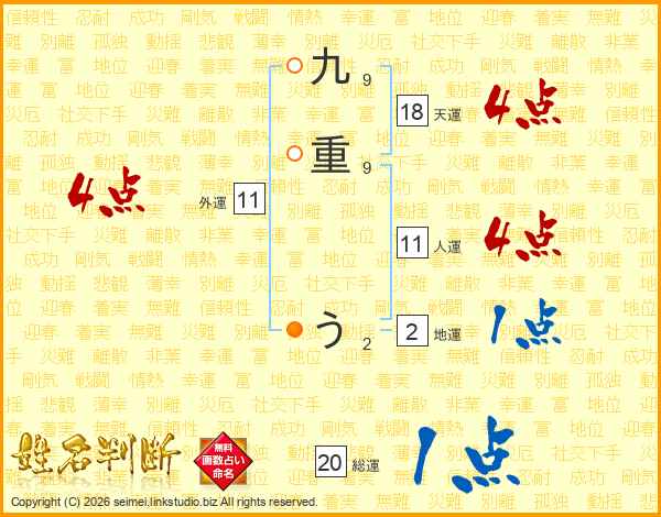 九重うさんの天運は18画の4点!