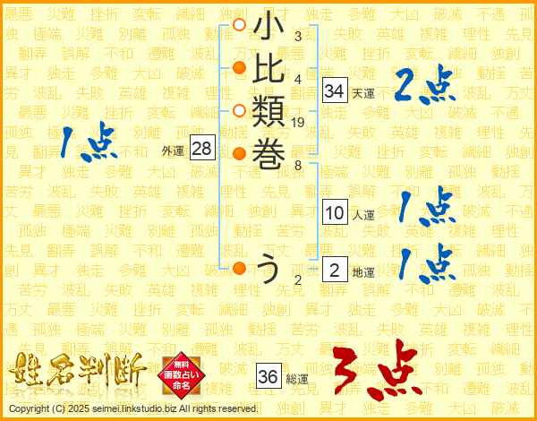 小(3画)比(4画)類(19画)巻(8画) う(2画)