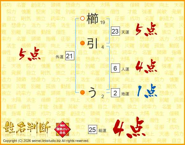 櫛引うさんの総運は25画の4点!