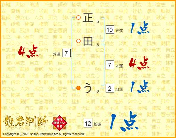 正田うさんの人運は7画の4点!