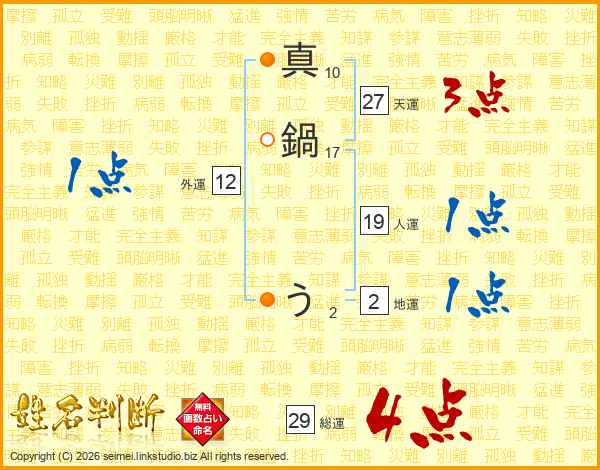 真鍋うさんの総運は29画の4点!