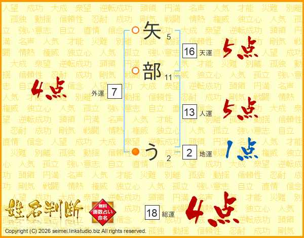 矢部うさんの総運は18画の4点!