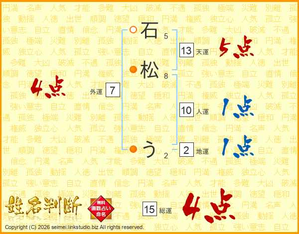 石松うさんの総運は15画の4点!