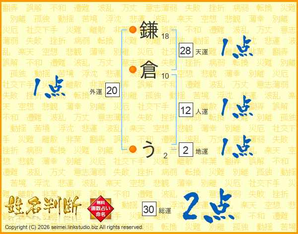 鎌倉うさんの総運は30画の2点!