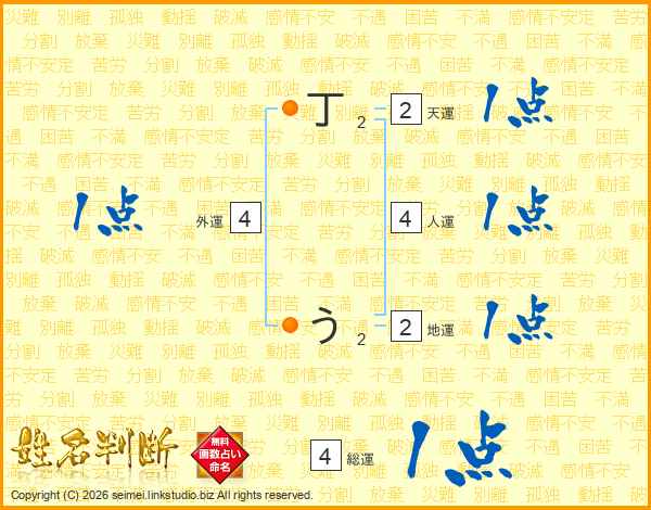 丁うさんの総運は4画の1点!