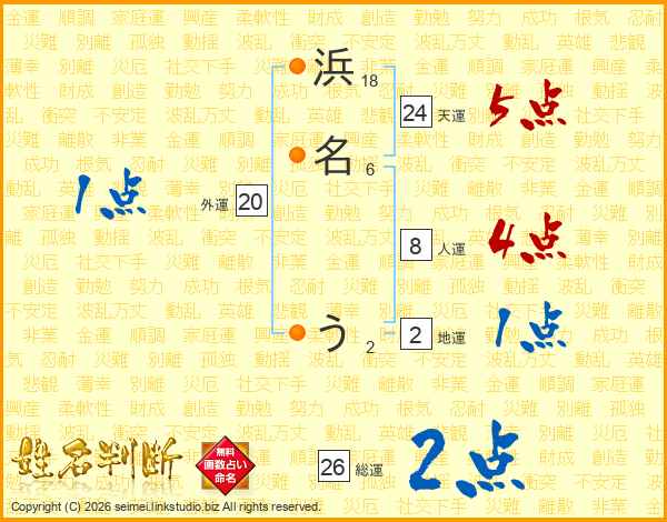 浜名うさんの総運は26画の2点!