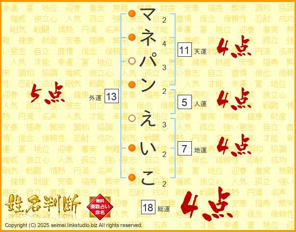 マネパンえいこさんの総運は18画の4点!