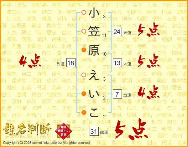 小笠原えいこさんの総運は31画の5点!