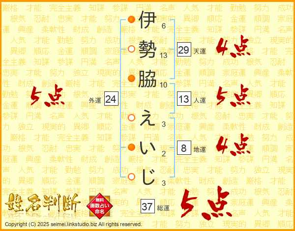 伊(6画)勢(13画)脇(10画) え(3画)い(2画)じ(3画)