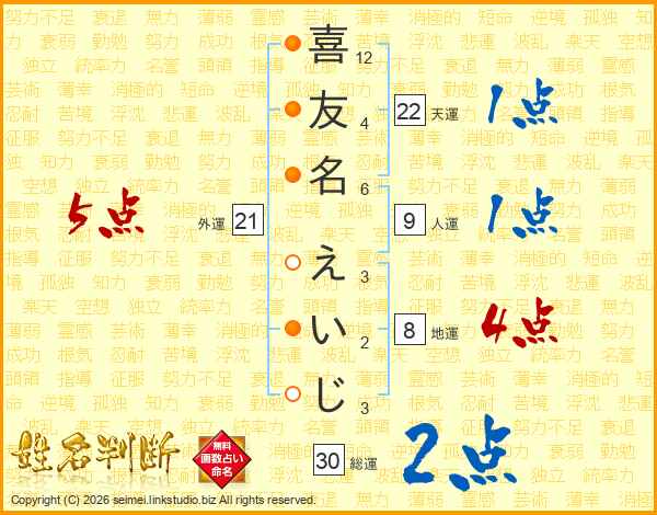 喜友名えいじさんの総運は30画の2点!