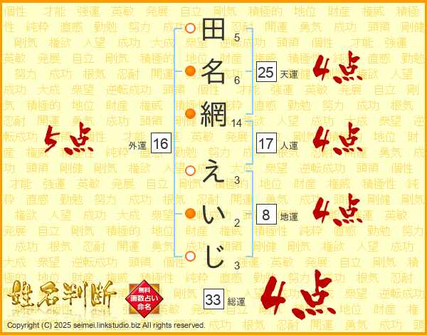 田(5画)名(6画)網(14画) え(3画)い(2画)じ(3画)