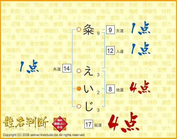 粂えいじさんの総運は17画の4点!