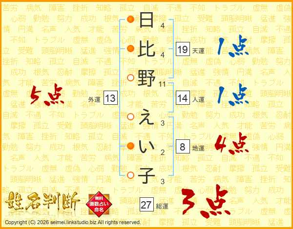 日比野えい子さんの総運は27画の3点!