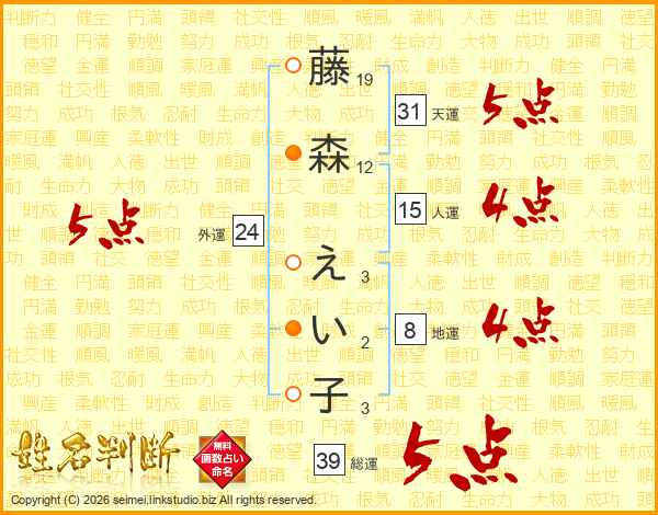 藤森えい子さんの総運は39画の5点!