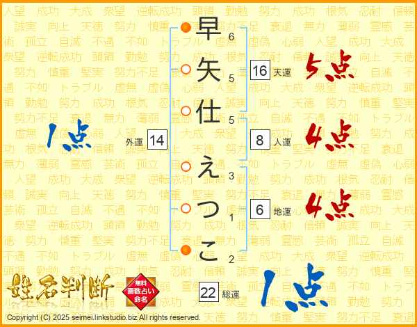 早矢仕えつこさんの総運は22画の1点!