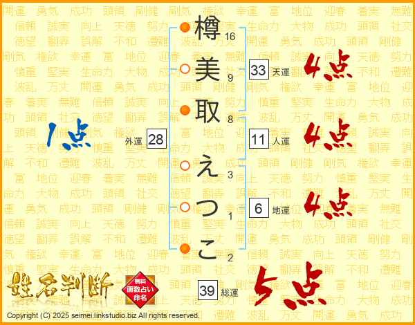 樽美取えつこさんの総運は39画の5点!