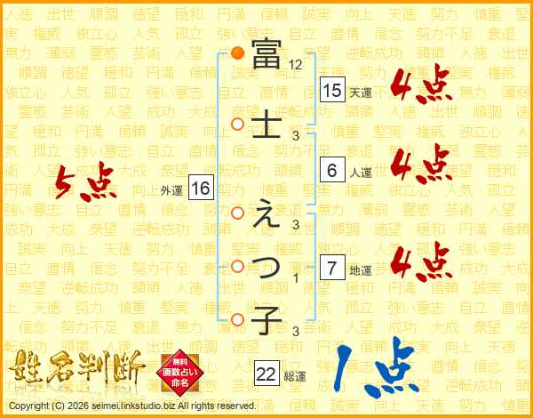 富士えつ子さんの総運は22画の1点!