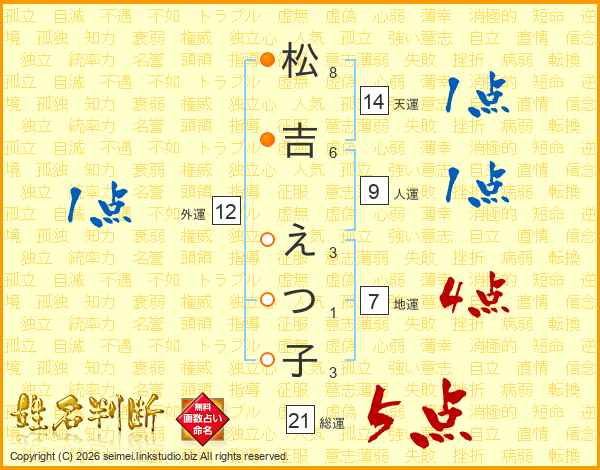 松(8画)吉(6画) え(3画)つ(1画)子(3画)