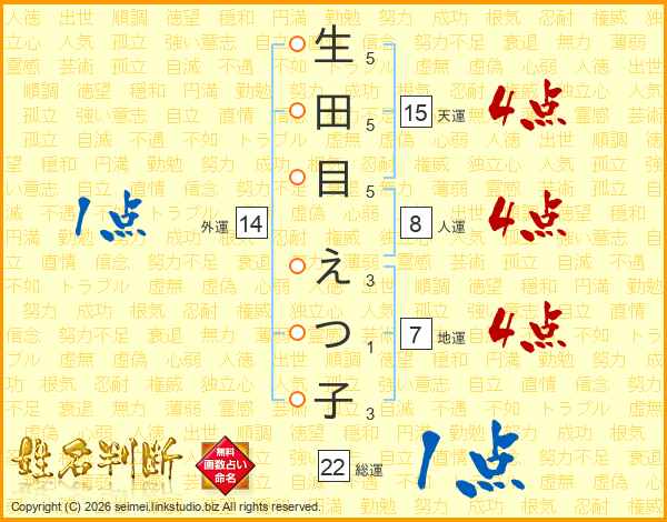 生田目えつ子さんの外運は14画の1点!