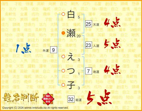 白瀬えつ子さんの総運は32画の5点!