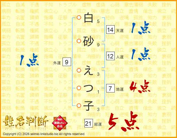 白砂えつ子さんの総運は21画の5点!