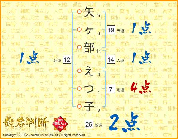 矢ヶ部えつ子さんの総運は26画の2点!