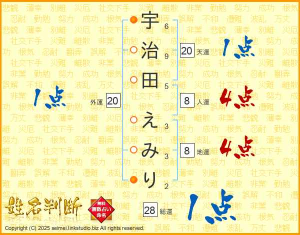 宇治田えみりさんの総運は28画の1点!
