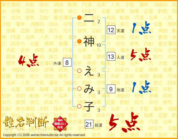 二(2画)神(10画) え(3画)み(3画)子(3画)