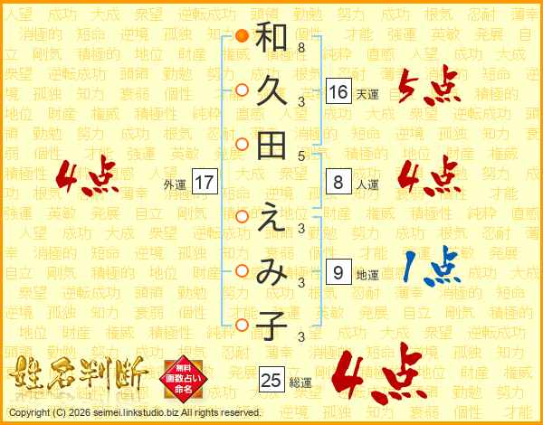 和(8画)久(3画)田(5画) え(3画)み(3画)子(3画)