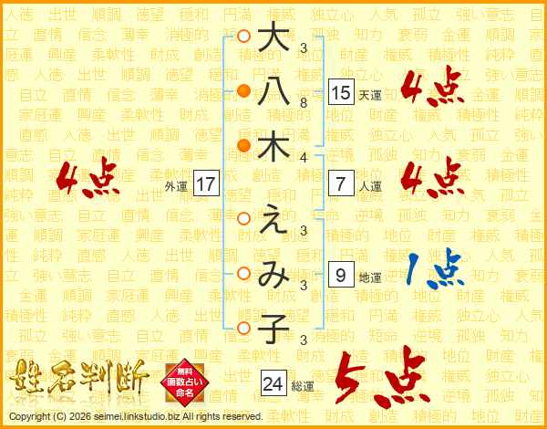大八木えみ子さんの外運は17画の4点!