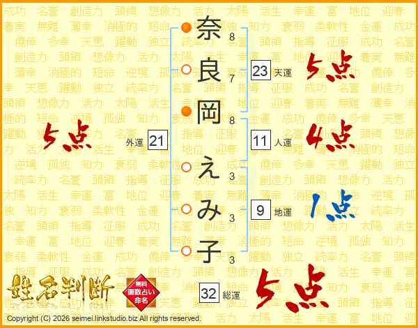 奈良岡えみ子さんの総運は32画の5点!
