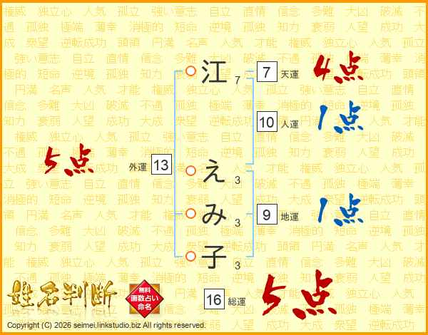 江えみ子さんの外運は13画の5点!