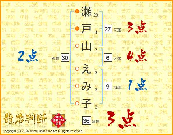 瀬戸山えみ子さんの総運は36画の3点!